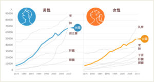 大腸がんは食の欧米化、肥満、アルコール、喫煙等により右肩上がりです。