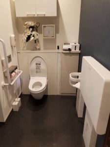 こちらは車椅子の方も入れるよう、広めに設計してあります。検尿もこちらでご提出下さい。