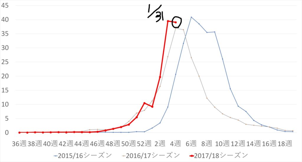 インフルエンザ流行状況in名古屋(1/31まで)